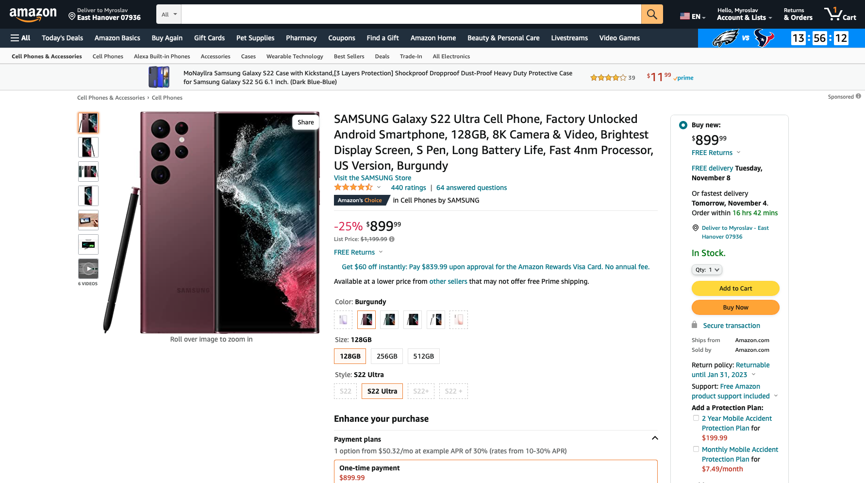 Samsung vende l'ammiraglia Galaxy S22 Ultra su Amazon con uno sconto di 300 dollari