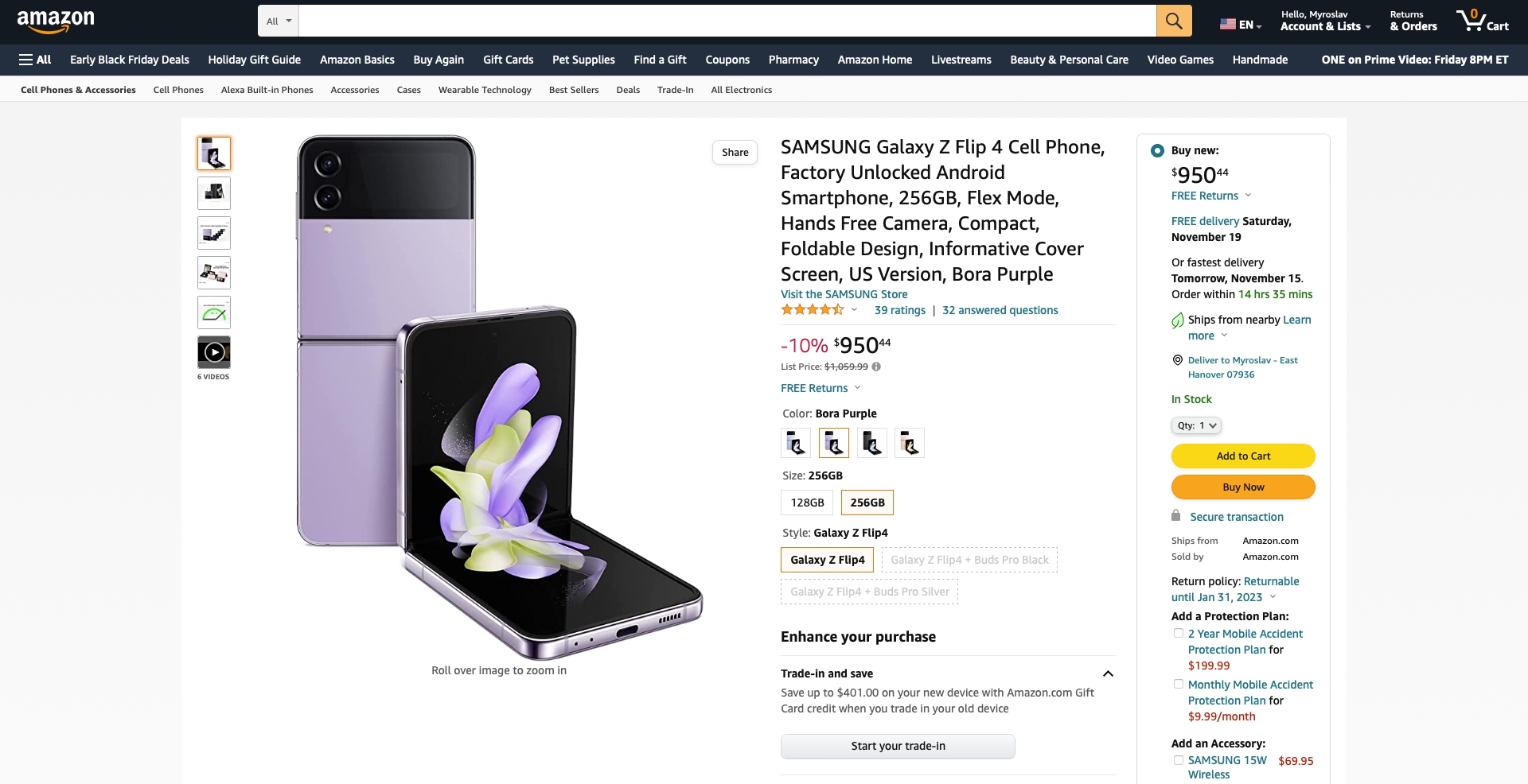 Il nuovo modello da 128 GB di memoria è in vendita su Amazon a check price on amazon. Il modello da 256 GB costa check price on amazon. Il dispositivo ha lo stesso aspetto del modello Galaxy Flip 3 dello scorso anno.