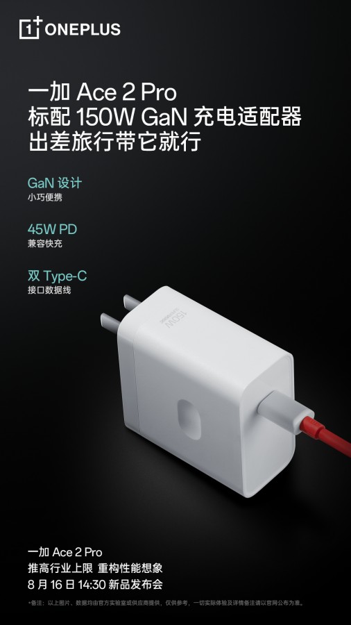 L'azienda ha inoltre annunciato che il OnePlus Ace 2 Pro sarà dotato di una batteria da 5000 mA*h. La potenza di ricarica rapida sarà di 150W. L'adattatore di alimentazione corrispondente sarà incluso nella confezione. La batteria sarà caricata in 17 minuti.