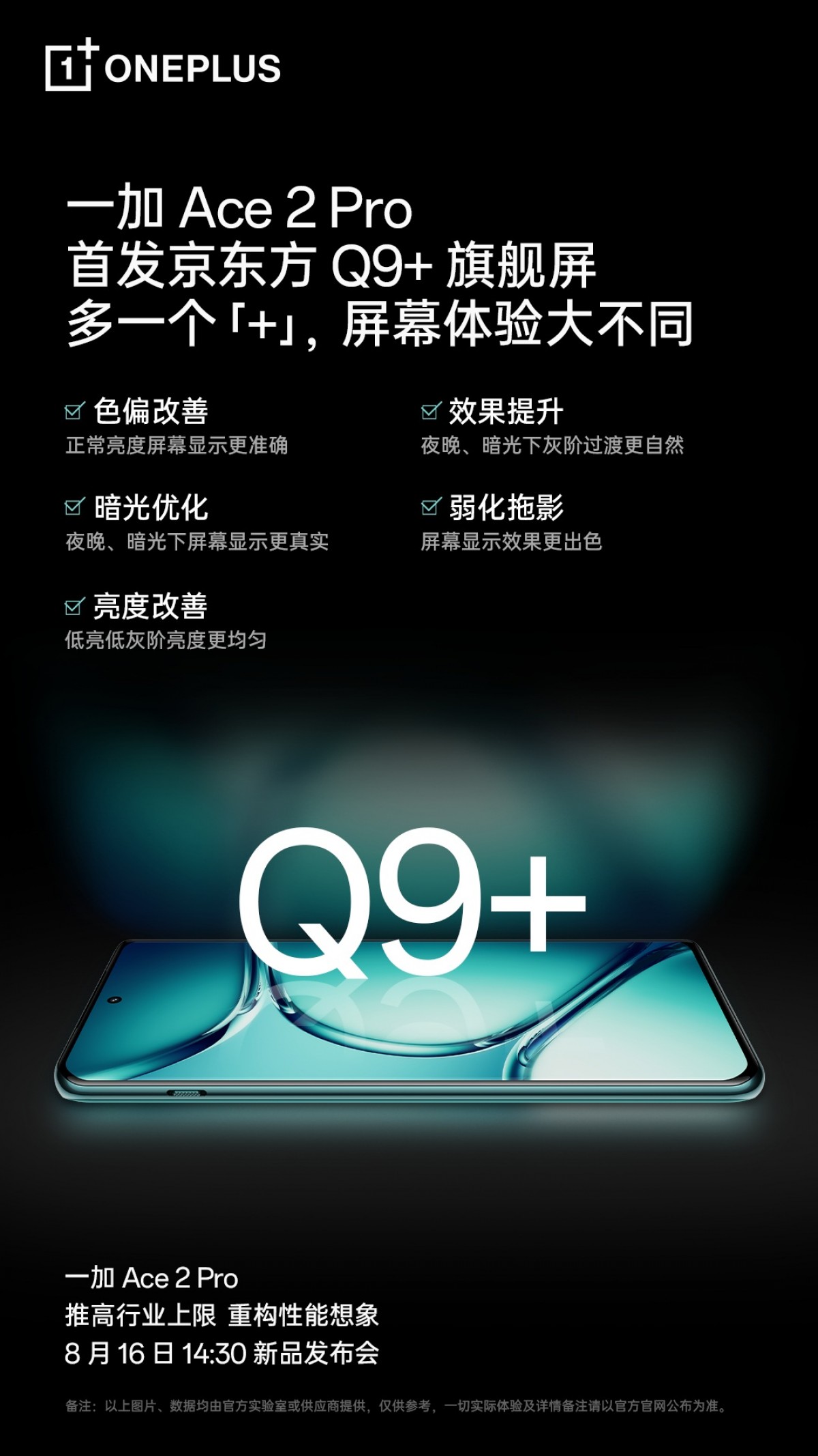 OnePlus Ace 2 Pro avrà un display OLED Q9+ migliorato con frame rate di 120Hz, profondità di colore a 10 bit e HDR10+.