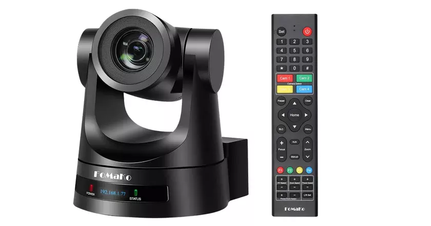 | Telecamera PTZ FoMaKo | Ottica 20x | Full HD (1080p) | HDMI, SDI, USB, Ethernet (PoE) | Struttura di trasmissione ad ingranaggi, compatibile con il software di live streaming |
