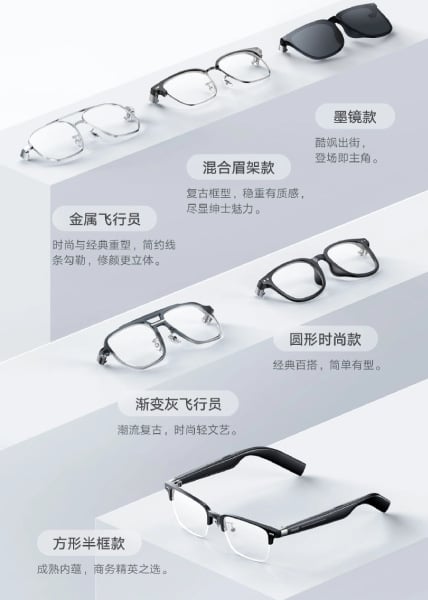 Il modello è stato denominato MiJia Smart Audio Glasses. La novità ha ricevuto sei montature diverse e una tecnologia di conduzione del suono ad aria. All'interno degli occhiali sono presenti altoparlanti a ultrasuoni che utilizzano un algoritmo per la sintesi di cavità sonore. La novità è dotata di un sistema di cancellazione del rumore durante le conversazioni e di speciali sensori che riconoscono la posizione del gadget. Ad esempio, quando si tolgono gli occhiali, la musica viene messa automaticamente in pausa.