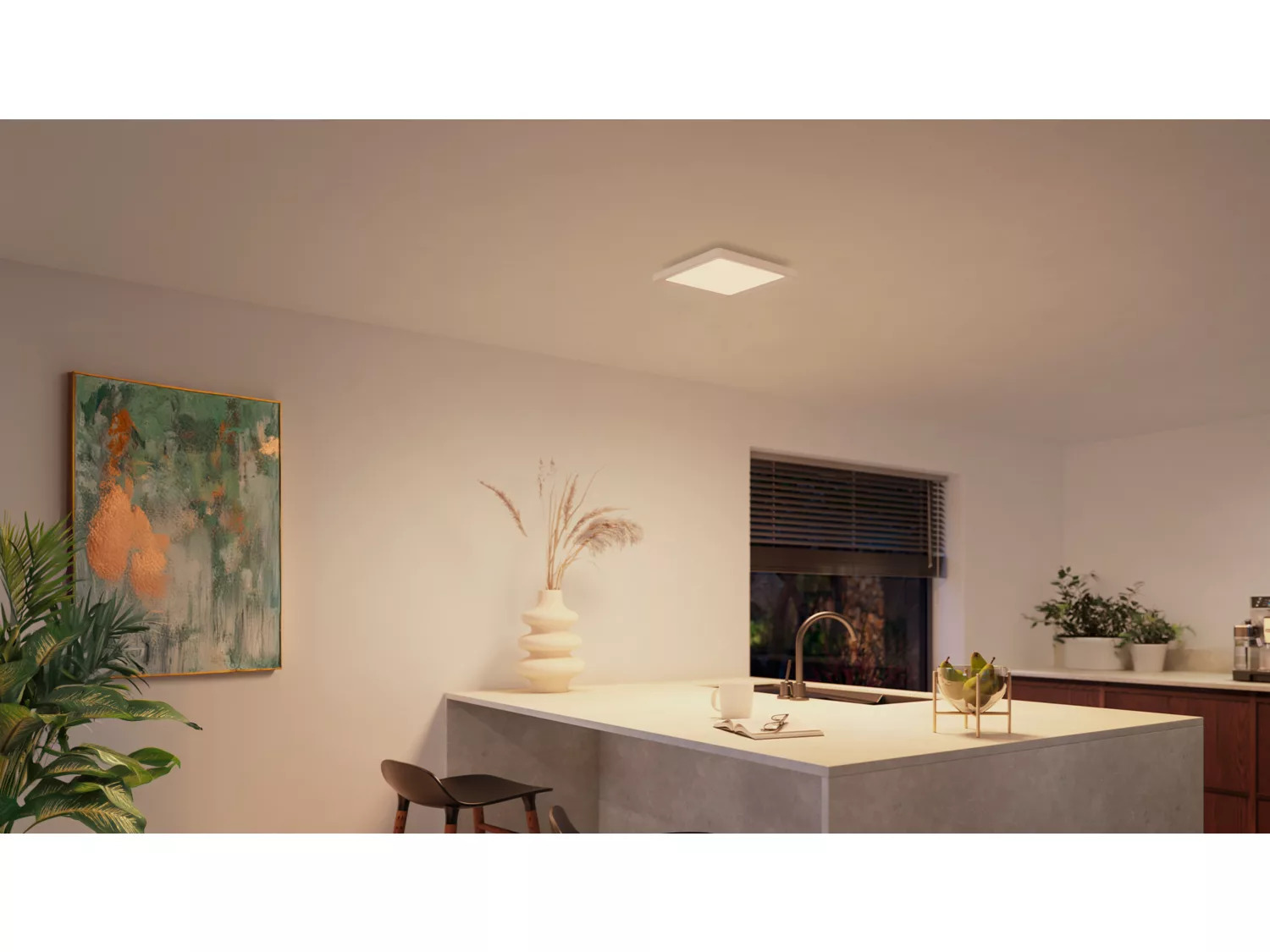 Gli apparecchi Tento offrono una luminosità da 1560 a 2000 lumen e consentono di regolare la luminosità, la temperatura del colore e gli effetti cromatici tramite l'app Philips Hue o utilizzando i comandi vocali.