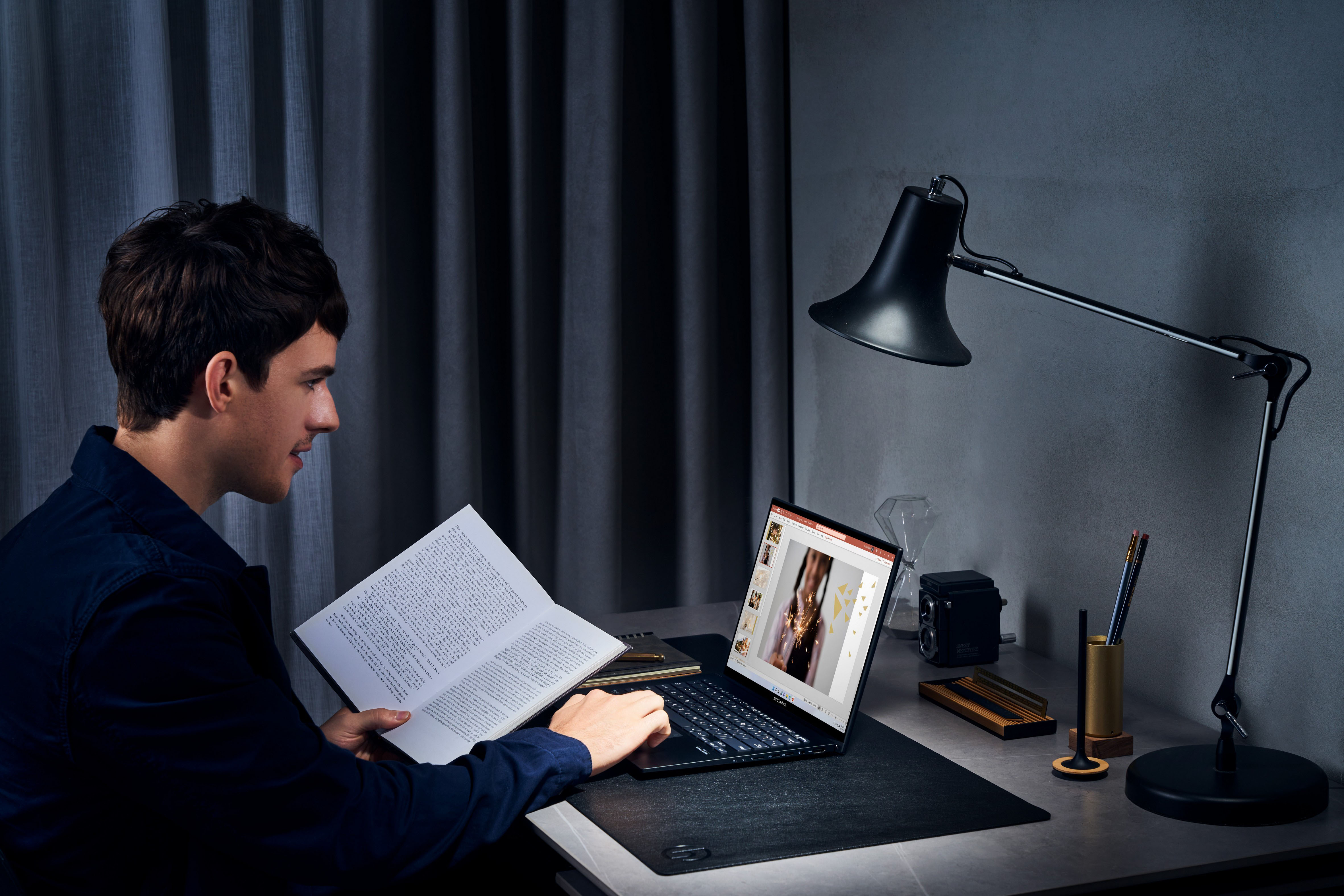 Cominciamo con il primo laptop al mondo dotato di un display OLED pieghevole da 17,3”. Ha una risoluzione di 2,5K e una volta ripiegato offre due schermi Full HD da 12,5 "senza cornice in mezzo. Il display vanta certificazioni PANTONE e TÜV Rheinland, copertura DCI-P3 al 100% e supporto Dolby Vision HDR.
