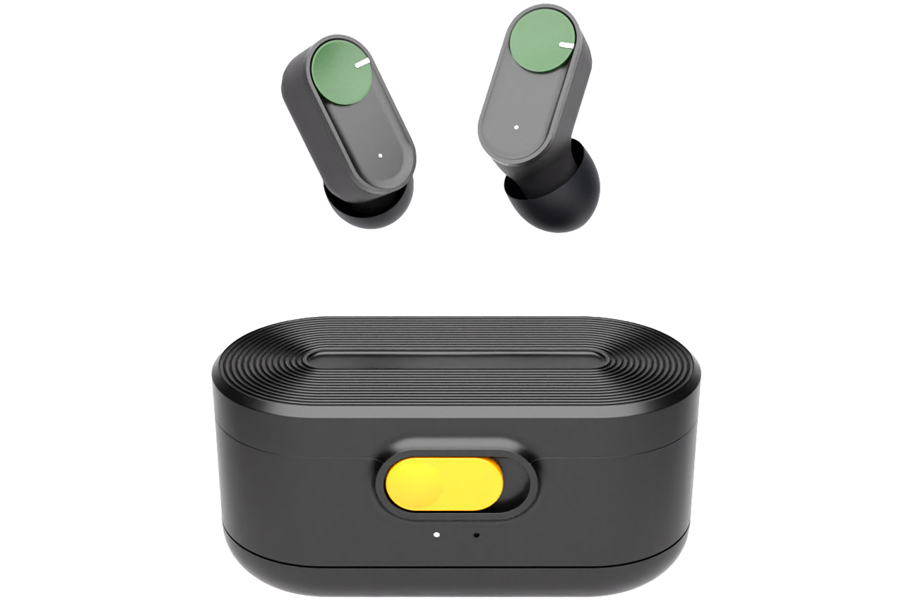 Gli auricolari hanno un design unico e offrono comfort senza compromettere lo stile. L'alloggiamento di colore nero opaco o bianco con un accenno del colore verde caratteristico di Braun è l'USP del design. Gli auricolari in silicone si abbinano all'aspetto opaco e la custodia di ricarica ha lo stesso tema. La cassa è tutta in nero opaco, con il pulsante giallo nella parte anteriore. Dovresti guardare la parte superiore degli auricolari, che ha il famoso design a motivi di Braun.