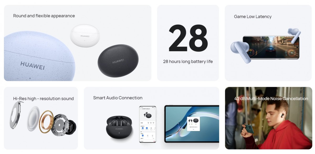 Il nuovo prodotto è il successore di FreeBuds 4i dell'anno scorso. Le cuffie hanno ricevuto un aspetto leggermente aggiornato, oltre a un sistema di cancellazione attiva del rumore migliorato. La tecnologia è in grado di smorzare il rumore fino a 42 dB. Per confronto, nel modello precedente, questa cifra era di 22 dB. Collegamento FreeBud 5i a smartphone e altri dispositivi Bluetooth 5.2.