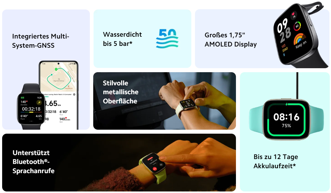 Il Redmi Watch 3 è in grado di rilevare i livelli di ossigeno nel sangue e di contare la frequenza cardiaca. La capacità della batteria è di 289 mAh. Secondo il produttore, la novità può funzionare senza ricarica per 12 giorni.