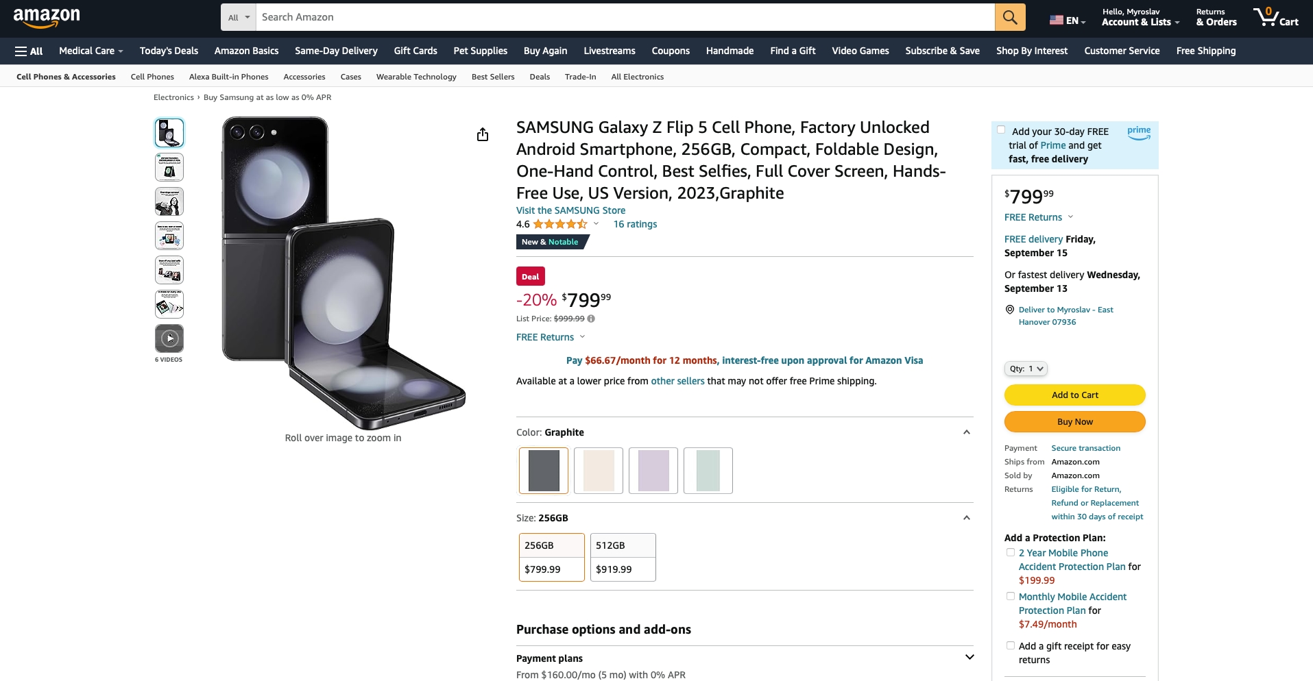 - Samsung Galaxy Flip 5, 256GB - $849.97 $999.99, -15%.