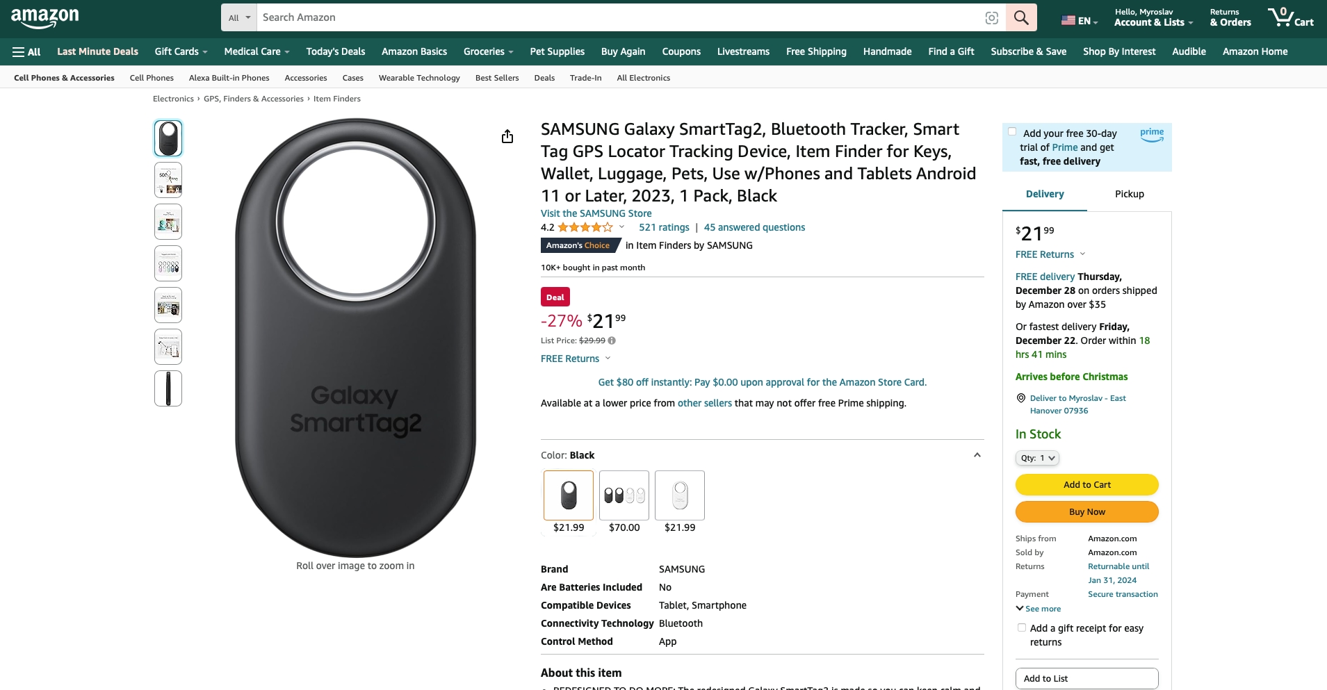 Offerta del giorno: Samsung Galaxy SmartTag 2 su Amazon con il 27% di sconto