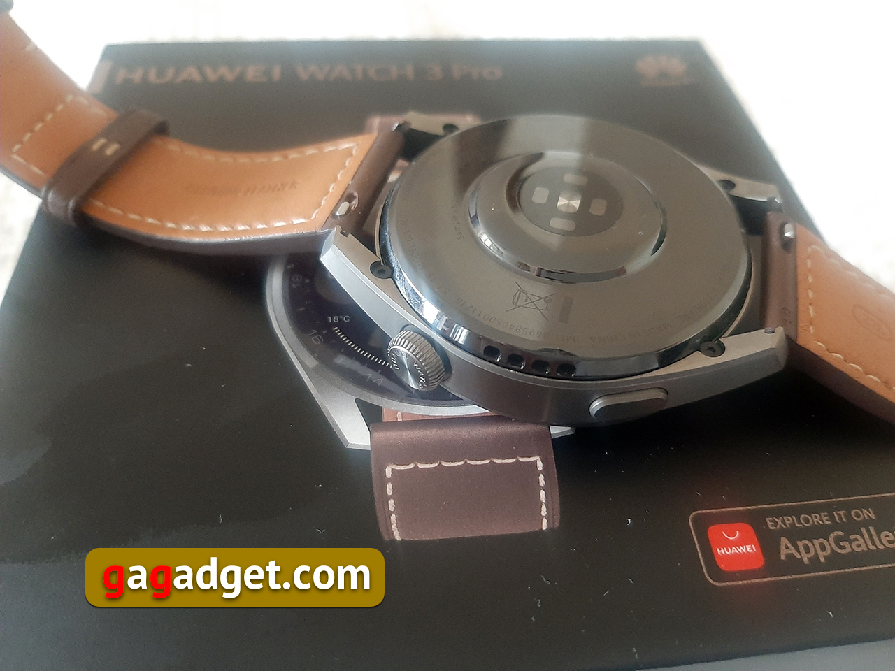 Sul retro, nonostante il nuovo sensore di temperatura, non è cambiato nulla. La cassa lucida con diodi che illuminano la frequenza cardiaca. Il cinturino è di buona qualità, rimovibile e può essere sostituito.
