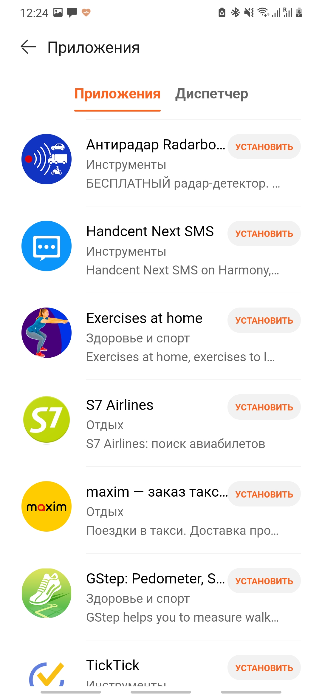 Perché scrivo che le capacità sono potenziali? Perché il semplice fatto che abbia il supporto per l'app non garantisce che faccia bene. L'utente non è né caldo né freddo rispetto a quello che l'AppGallery ha attualmente. Le applicazioni sono poche, il negozio offre servizi russi come il taxi Maxim o le compagnie aeree S7, servizi in lingue europee, diverse applicazioni quasi clonate con esercizi sull'orologio e un'applicazione sconosciuta con una mappa. Uklon, banche, venite?