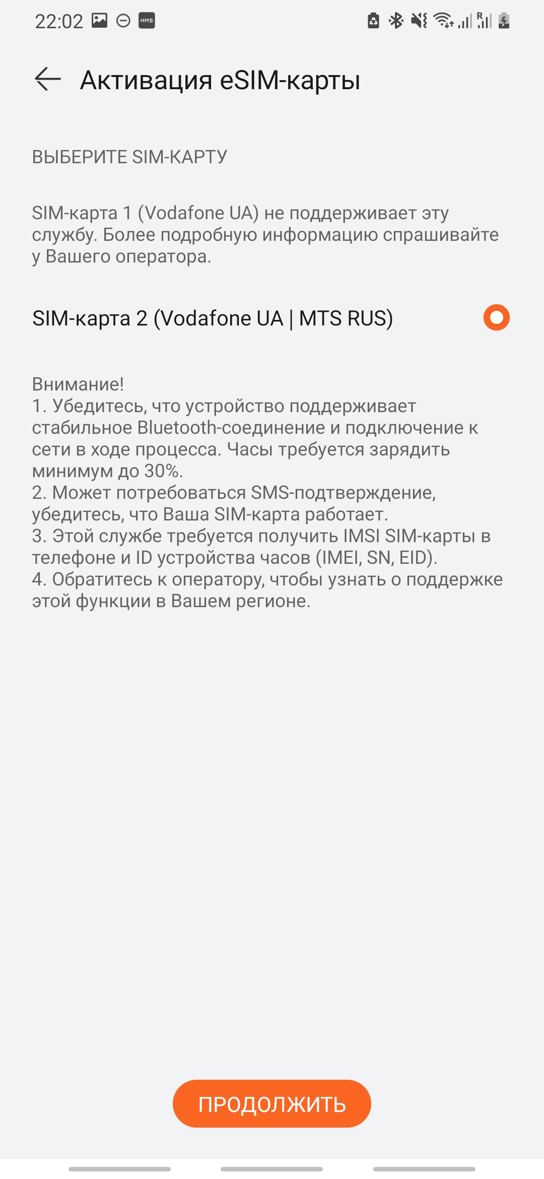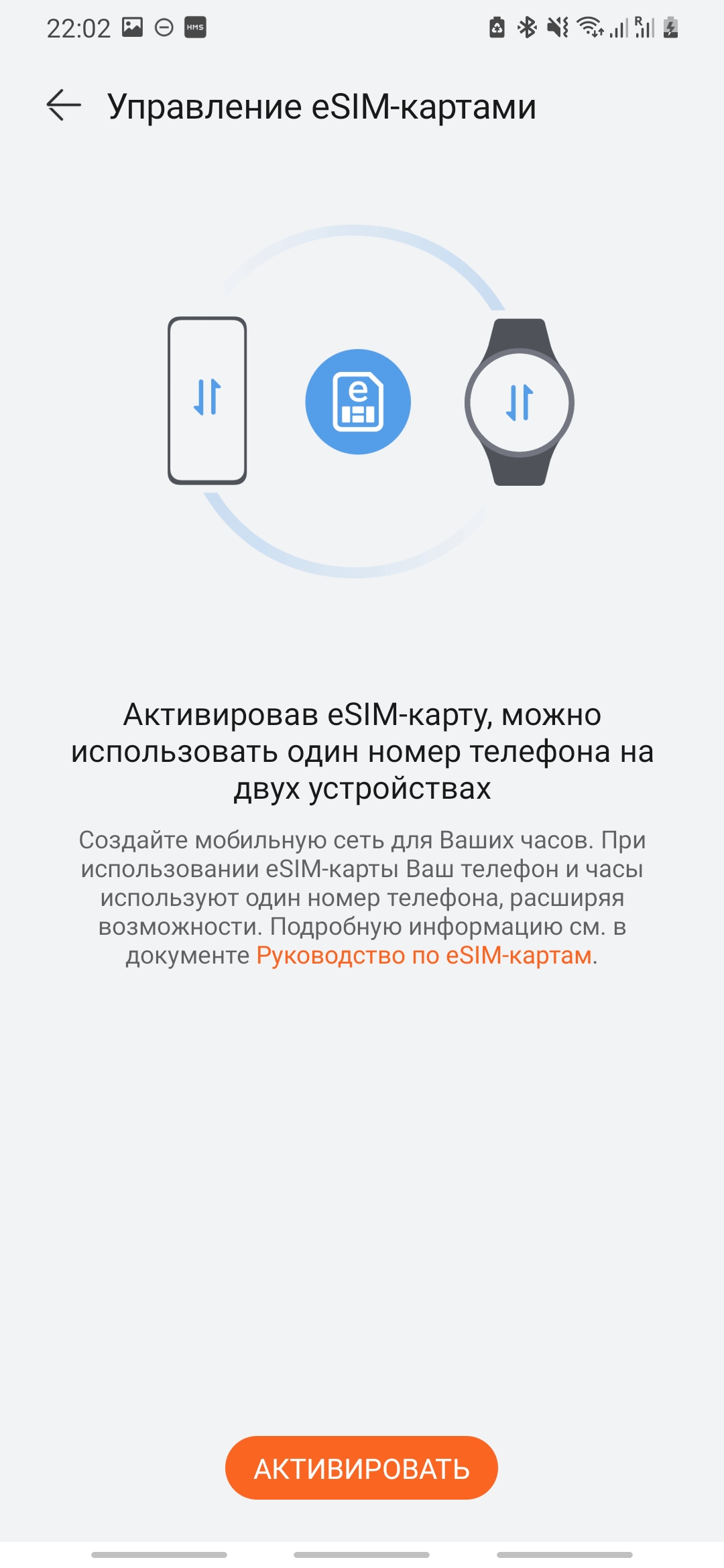 supporto eSIM. L'orologio può ricevere chiamate, ecc. senza telefono, allo stesso numero. La connessione è molto intuitiva, ma funziona solo con le schede SIM che supportano questa funzione. In Ucraina, non c'è ancora il supporto per la tecnologia che permette di copiare il numero per la eSIM. In altri paesi dove c'è, il servizio deve essere collegato attraverso l'operatore.