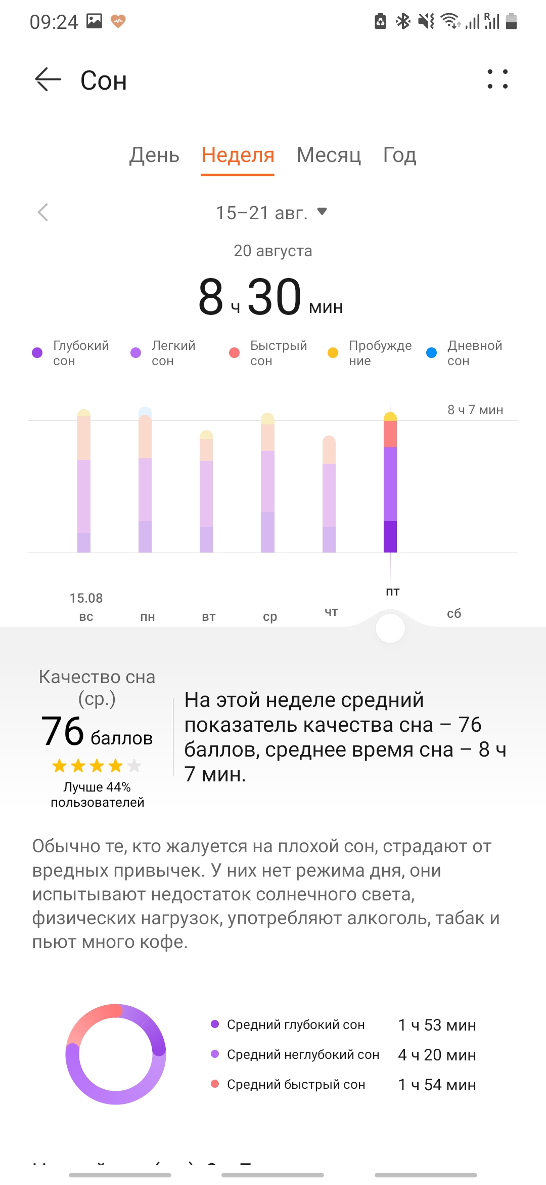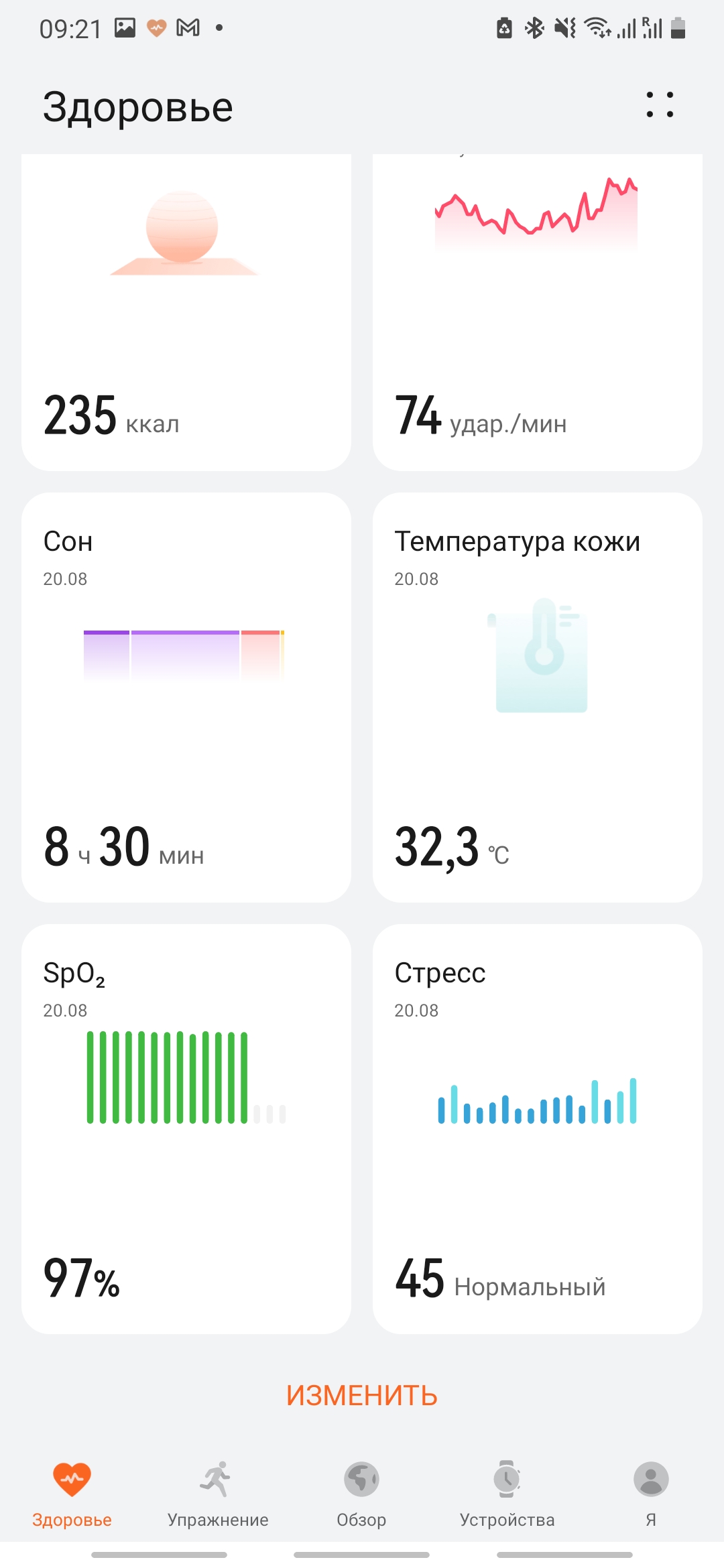 Gli avvisi sanitari nel menu dell'app sono diventati più intelligenti e dettagliati. Soprattutto nelle questioni che riguardano il sonno. L'utente ora ottiene per prima cosa non solo i numeri nudi, ma anche la loro spiegazione. E l'orologio mi ha anche rimproverato di aver sbagliato di nuovo il mio modello di sonno, quando sono andato a letto e mi sono svegliato più del solito per diversi giorni di fila e ho dormito male.