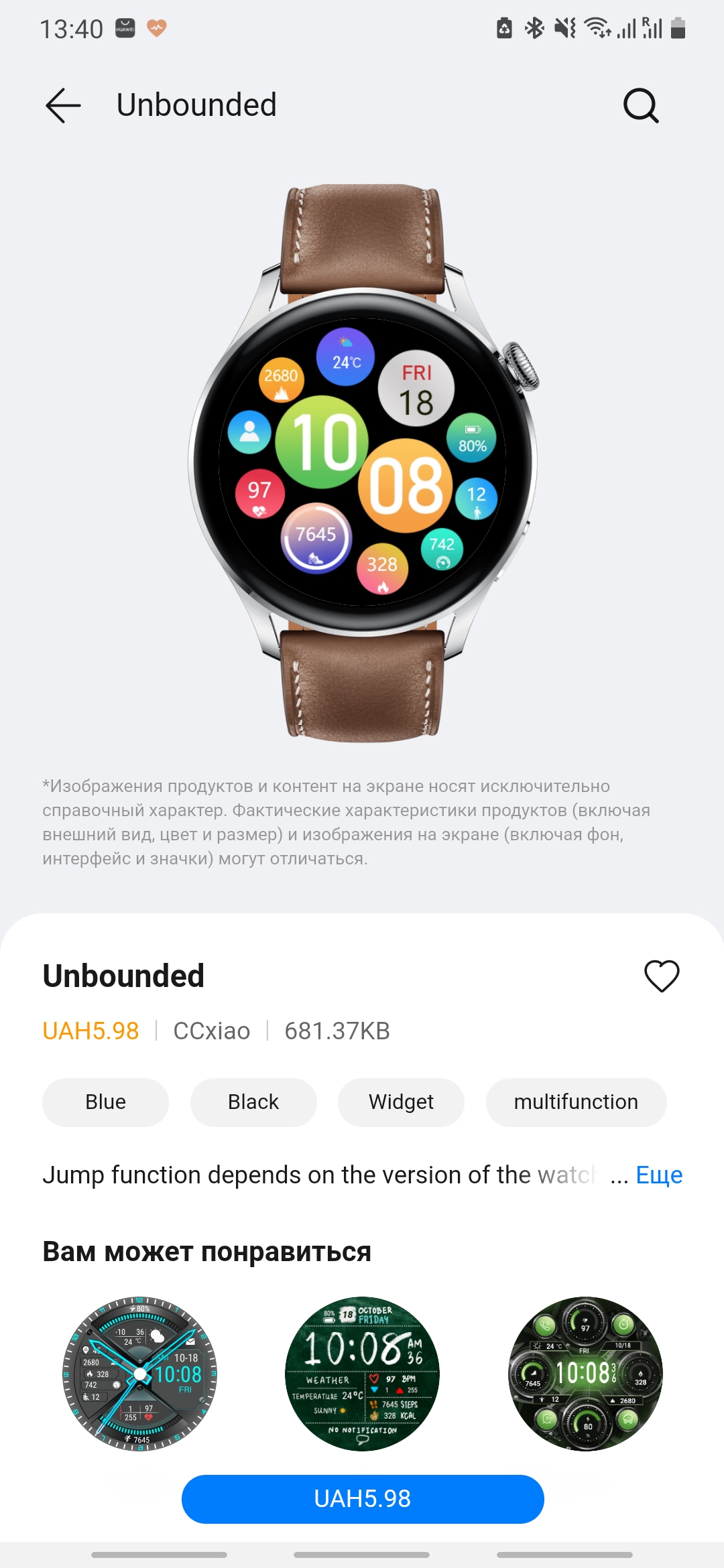 Ci sono ancora più display con il rilascio del nuovo modello, ci sono ora più di 1.000 nel negozio di app, Huawei specifica. C'è la sensazione che la quota di quelli a pagamento sia aumentata, o il negozio stesso li sta truccando in modo da mostrare più di quelli disponibili per denaro, per motivare l'utente a tirare fuori il portafoglio. Ci sono molti disegni interessanti e diversi anche nelle versioni gratuite. Per soldi, si può ottenere un quadrante dell'orologio che ha più informazioni su di esso.