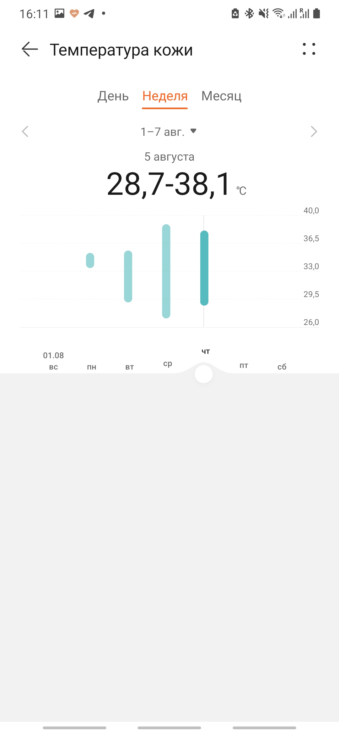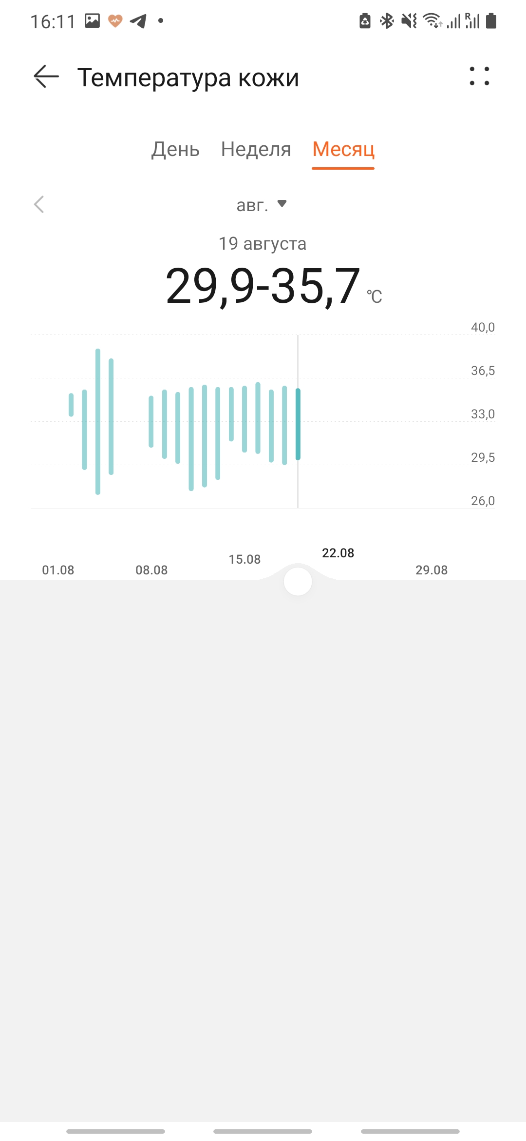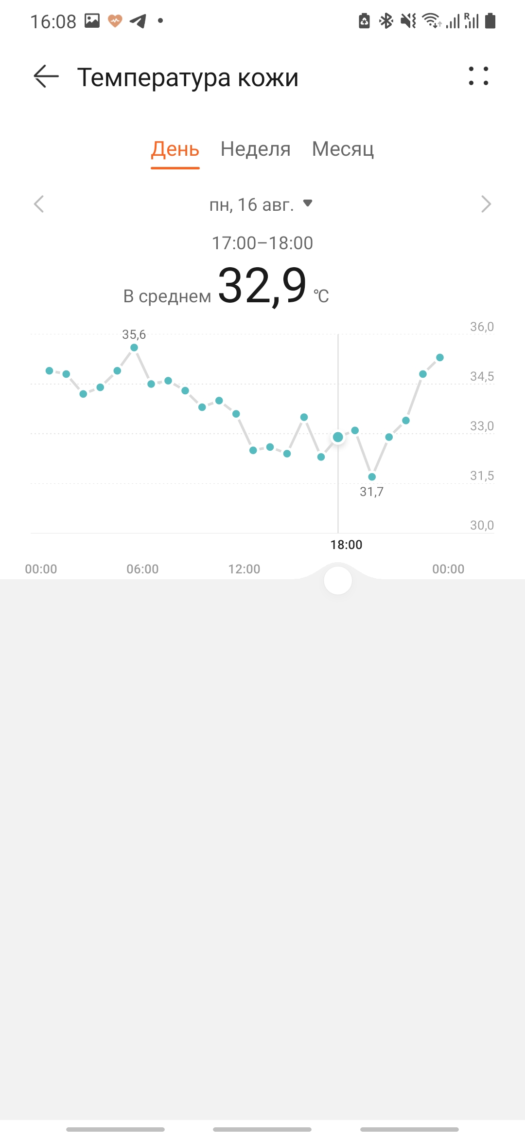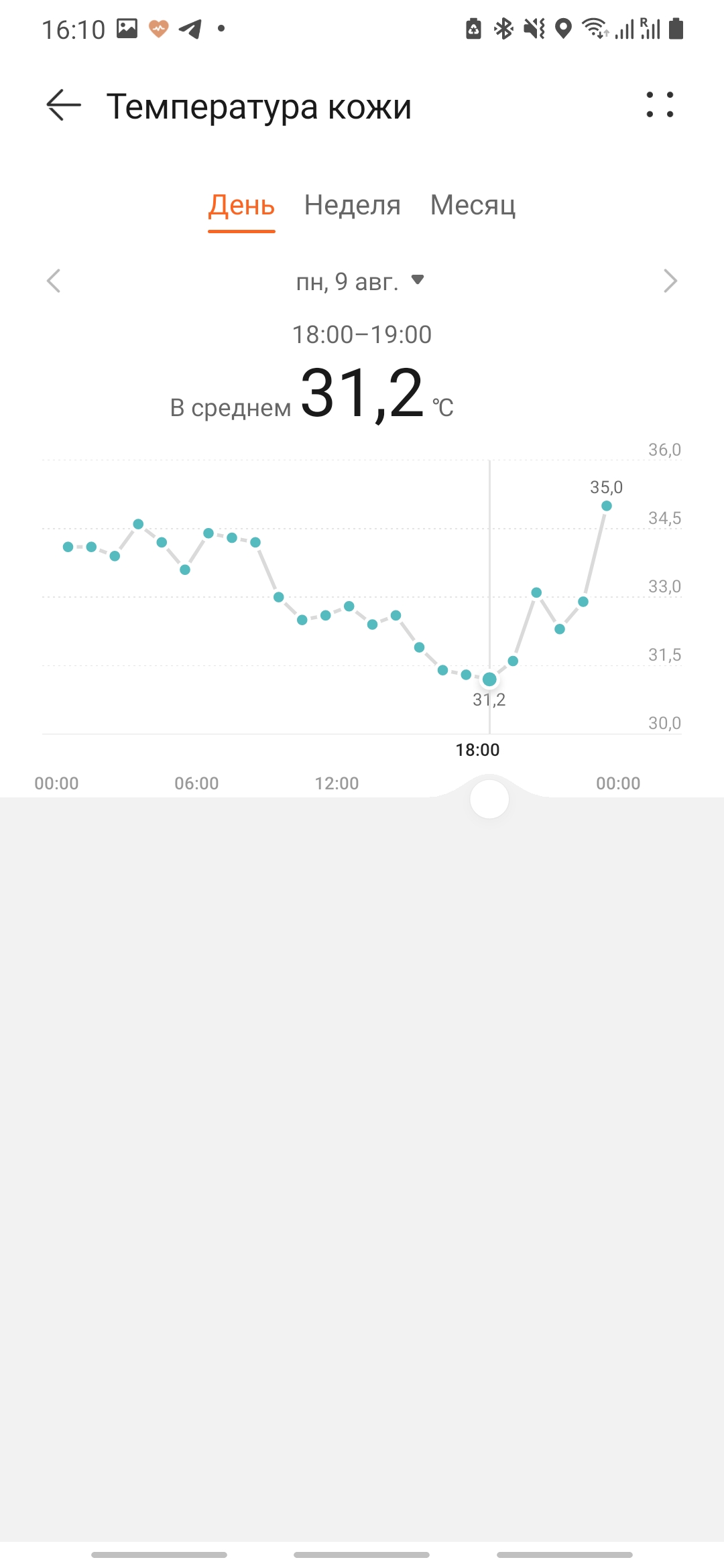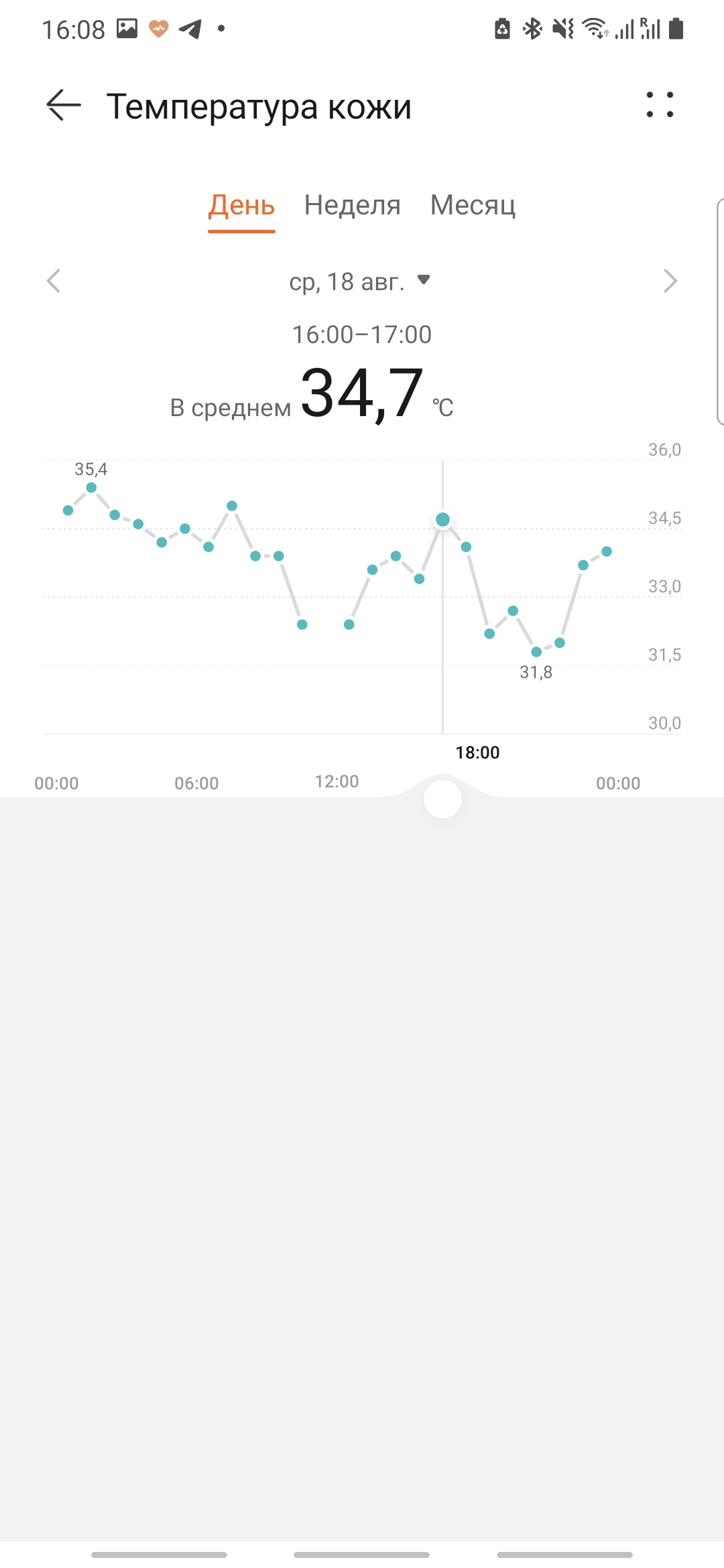 Posso solo trarre una conclusione da questo. Probabilmente l'orologio misura più correttamente la temperatura durante il sonno, quando sono il più fermo possibile. E si alza naturalmente più vicino al risveglio. Durante il giorno, soprattutto quando mi muovo molto e intensamente, iniziano i problemi perché si muove avanti e indietro sulla mia mano.