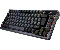 La tastiera utilizza tappi ROG a due componenti realizzati mediante stampaggio a iniezione. Viene utilizzata plastica PBT resistente e ruvida, che non si consuma nel tempo. Nonostante l'uso del PBT, i tasti sono retroilluminati. I tappi sono di altezza media e hanno un nucleo leggermente accorciato. Questo dovrebbe impedire ai tasti di oscillare durante l'uso.