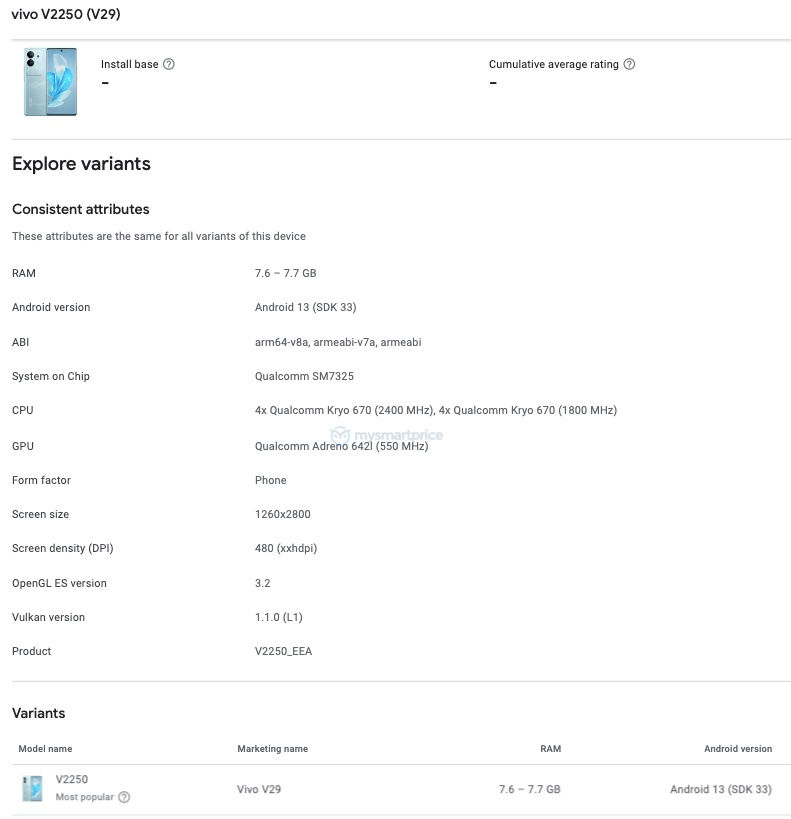 Un nuovo smartphone vivo V29 è apparso nel database di Google Play Console. La fuga di notizie ha rivelato l'aspetto e alcune specifiche del dispositivo.
