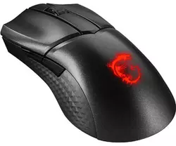 MSI Clutch GM31 Lightweight Wireless è un mouse asimmetrico per destrorsi. È realizzato principalmente in plastica nera ruvida, che offre una buona presa con il palmo della mano e non è molto marcata. L'unico elemento decorativo è un logo retroilluminato. I pulsanti principali sono simmetrici e separati dalla parte principale del case. Sembra che siano ulteriormente caricati a molla, perché non oscillano affatto, come invece accade in molti mouse con un design simile dei pulsanti principali. Se visto dall'alto, si può notare che il mouse ha un incavo per il pollice e una piccola estensione sul lato destro per l'anulare e il mignolo.